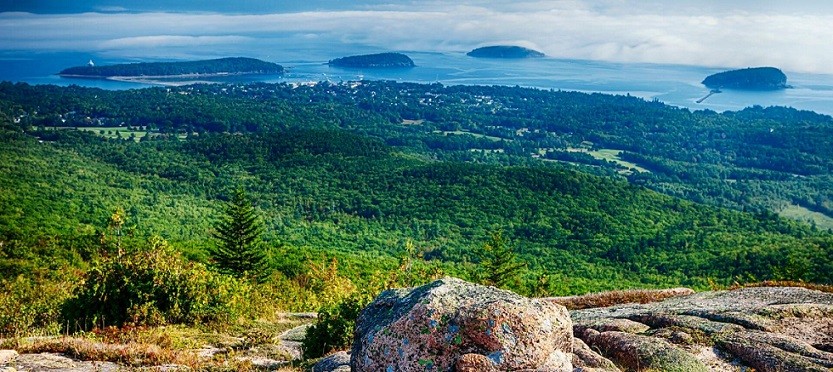 ~ In terms of size, it’s approximately 47,000+ acres. The largest share is on Mount Desert Island, but it also includes a slice of Schoodic Peninsula on the mainland, and several offshore islands.